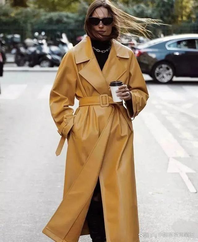 衬衫式的宽松皮衣,搭配宽松阔腿裤,版型越宽松越时髦,走上街头酷感十足。