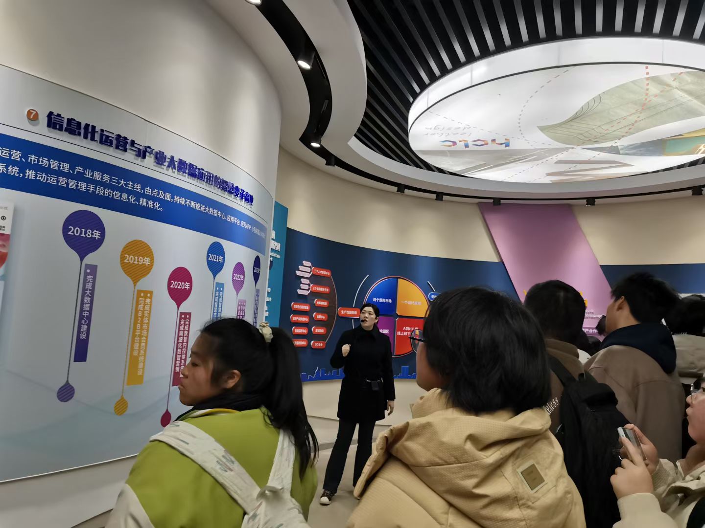 首先,师生一行来到研学第一站(嘉兴大学轻化工程专业校外实践基地之一的海宁中国皮革城博物馆)参观学习并受到博物馆领导的热烈欢迎。同学们在卜经理的介绍下认知了皮革在国内外的发展历史、海宁皮革发展历史、海宁中国皮革城的发展历史和海皮(Happy)模式等。随后,师生一行来到研学第二站(嘉兴大学轻化工程专业产教融合校外基地之一的浙江格莱美服饰有限公司)参观,在总经理助理王吉平的精心安排和90后设计师周童晓的讲解中认知了公司的情况和皮革服装之面料、流行色彩和流行风格,感知了皮革服装给予人们的舒适、时尚和美。
