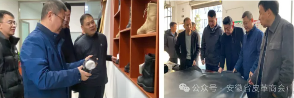 调研团队先后深入多家企业,首日走访了安徽亿博皮业有限公司、安徽亿博环保工程有限公司、安徽鸿望科技发展有限公司、安徽荷华科技发展有限公司、安徽中洋皮革、安徽驰珩皮革科技有限公司、安徽荷尔意皮业有限公司、安徽天创皮革有限公司、宿松临江三达水务有限公司、安徽港口集团宿松有限公司企业,深入车间参观调研。